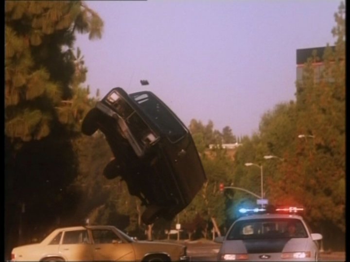 Elokuvan lukuisat stuntit ovat itseään toistavia ja aiheuttavat naurunpurskahduksia ensimmäisestä "kunnollisesta" stuntista lähtien. Huima autojen välinen takaa-ajo pysähtyy siihen, kun Wilsonin tähdittämä Phillips kurvaa oman henkilöautonsa keskelle tietä, suoraan kapinallisten päälle tulevan pakettivaunun eteen. Seuraus? Phillipsin auto pysyy liikahtamatta paikallaan, samalla kun kapinallisten paku heittää sivuttaisvoltilla katolleen ja räjähtää valtavan tulipallon kera. Samaa stunttia toistetaan kaikissa elokuvan kolmessa muussa autostuntissa, mistä parhaimman naurun irroittaa paloauto ja tielle jäänyt henkilöauto. Arvaatko kumpi autoista lentää volttia?