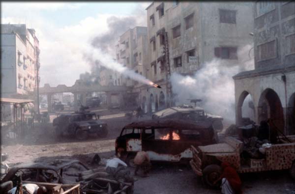 Kun runsaan puolen tunnin jahkailun jälkeen elokuva lopultakin siirtyy toimintavaiheeseen, ryminä ei taukoa ennen elokuvan loppukohtausta. Hektisen kaupunkisodan kuvaajana Scott väläyttelee ajoittain todellisia kykyjään onnistuen kuvaamaan taistelukentällä vallinnutta pelon ja ahdistuksen täyttämää sekasortoa varsin uskottavasti. En kuitenkaan voi olla ihmettelemättä, kuinka eräästä modernin sotahistorian pahimmasta epäonnistumisesta on onnistuttu luomaan amerikkalaisten itsetuntoa ruokkiva jenkkihehkutus kaikkine "kaveria ei jätetä" -uhoamisineen. Elokuvan loppukohtauksessa tähtilippupaatos yltyy jo oksettavalle tasolle. Ilmeisesti Scottin ansioksi on luettava että vaihtoehtoinen, vielä kamalampi loppukohtaus löytyy vain kakkoslevyn poistettujen kohtausten joukosta.