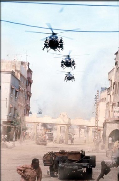 Ridley Scottin uraa voidaan perustellusti pitää jokseenkin yhtä tasaisena kuin vuoristorata. Toisaalta mies on ohjannut sellaisia mestariteoksia kuin Blade Runner (1982) ja Alien - Kahdeksas matkustaja (1979), pahimmillaan taas äijä on kiduttanut katsojia G.I. Janen (1997) ja Hannibalin (2001) kaltaisella roskalla. Kun tämän median lukijoille erittäin tuttu tähtilipun liehuttaja, aikaisemmin Ridleyn lahjattoman velipojan kanssa työskennellyt Jerry Bruckheimer, yhdessä Lara Croft: Tomb Raider (2001) ja Con Air (1997) -elokuvat ohjanneen Simon Westin kanssa, onnistui taivuttelemaan Ridley Scottin ohjaamaan elokuvan eräästä USA:n sotilashistorian pahimmista fiaskoista, hanke kieltämättä herätti hieman mielenkiintoa. Ei kuitenkaan niin paljoa, että olisin vaivautunut Isku Mogadishuun (Black Hawk Down) -elokuvaa teatteriin katsomaan, eikä DVD:n hankkiminen täydellä hinnalla houkutellut yhtään enempää. Kun erääseen ystävällismieliseen naapurimaahan sijoitettu täyden palvelun DVD-myymälä taannoin tarjosi hulppeilla extroilla kuorrutettua Isku Mogadishuun tripla-DVD:tä noin kymmenen täkäläisen oravannahan hintaan, tuli teos kuitenkin poimittua hyllyyn ja useamman kuukauden hyllyssä lojumisen jälkeen levy löysi tiensä allekirjoittaneen DVD -soittimeen.