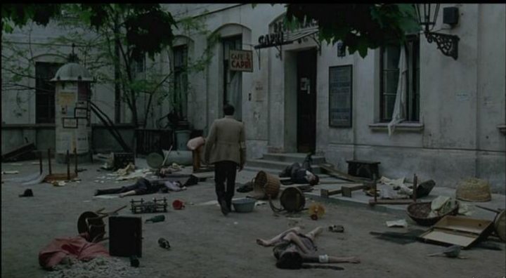 Vähän ennen sodan päättymistä saksalainen kapteeni Wilm Hosenfeld (Thomas Kretchmann) törmää sattumalta raunioissa piileskelevään Szpilmaniin. Olkoonkin että tapahtumat perustuvat todellisuuteen ja ovat luettavissa Szpilmanin kirjasta en kuvaile tätä kohtausta sen tarkemmin kuin toteamalla sen olevan kouluesimerkki tehokkaan kohtauksen rakentamisesta äärimmäisen hienovaraisesti.